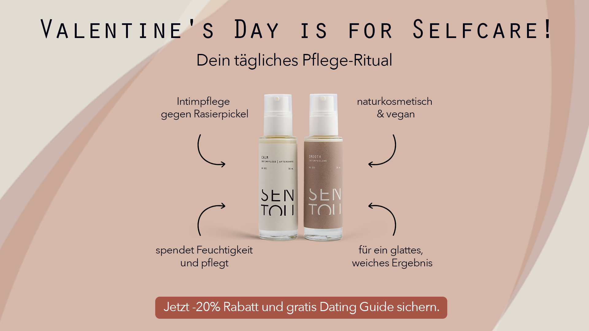 Wir lieben Valentinstag! 💘 Damit ab sofort nichts mehr schief gehen kann bekommst du auf deine Bestellung ab 49€ ganze -20% Rabatt und on top schenken wir dir noch unseren Dating Guide!
